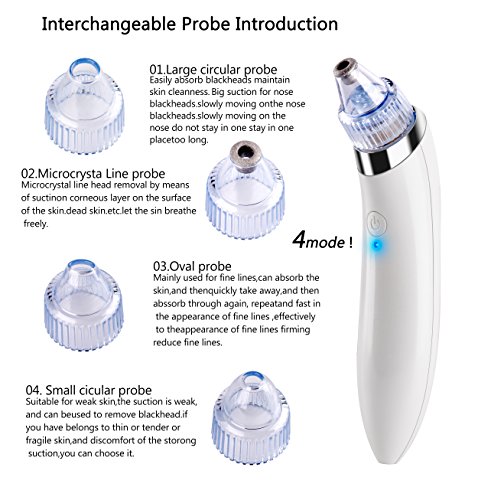 - ★Special Design: 5 Intensity Levels of this Facial Pore Cleaner, suitable for different skin, and comes with 4pcs changeable beauty probes, which can offer different functions and offer a deeper clean for your facial skin. the levels data and electricity of the machine will be showed on the LED screen to display different mode clearly. The pore cleaning kit is also suitable for men as well as for Women.