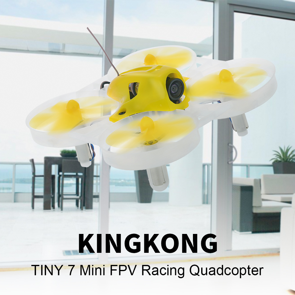 This KINGKONG Tiny 7 is a fantastic mini FPV racing quadcopter. With full protection EDF design and 75mm super tiny size, it's perfect to fly indoor and perfectly safe to kids and animals. It's also equipped with an 800TVL 150° wide FOV 5.8G 16CH camera transmitter for exciting FPV flight.