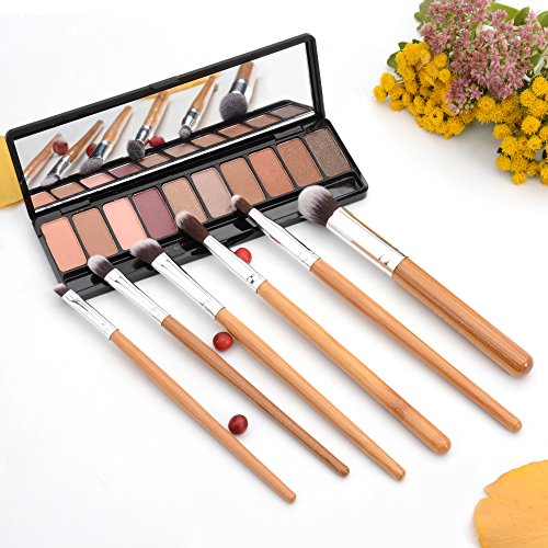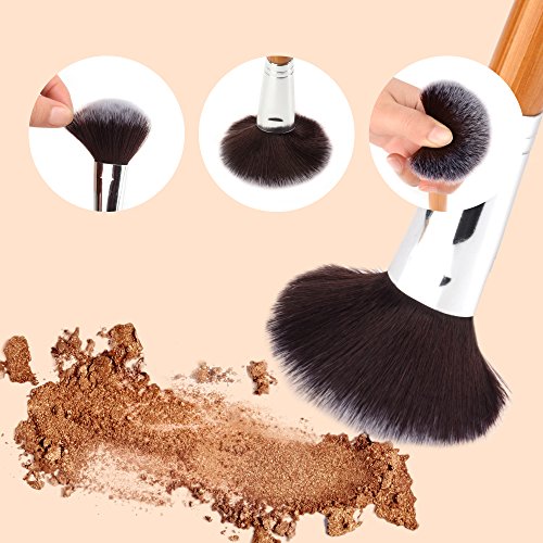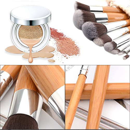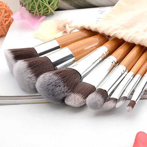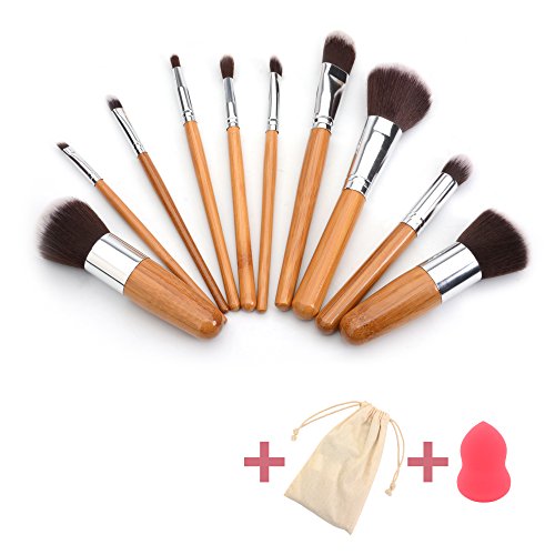 SUAYLLA 10 Pieces Makeup Brushes Set Professional Bamboo Handle Premium Synthetic Kabuki Foundation Blending Blush Face Powder Eye Brush with Carrying Bag and a Cosmetics Beauty Sponge Gourd