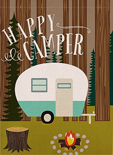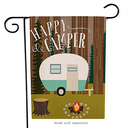 -. Title : Dyrenson Home Decorative Happy Camper Garden Flag Double Sided, Rustic Camping Trailer House Yard Flag, Inspirational Quote Campsite Garden Yard Decorations, Vintage Seasonal Outdoor Flag 12 x 18