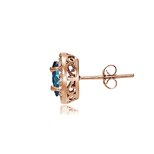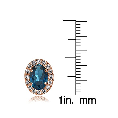 Sterling Silver, Yellow or Rose Gold Flashed London Blue and White Topaz Oval Halo Stud Earrings