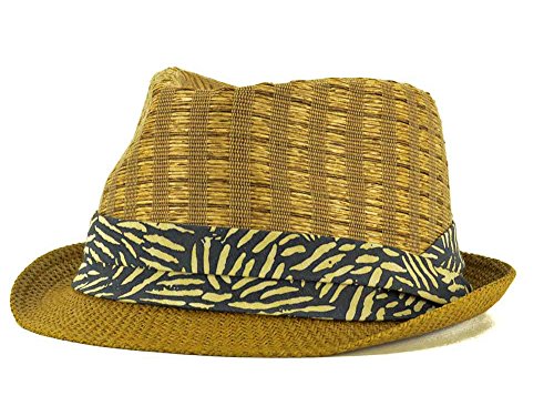 (Novelty Now)/Accessories/Hats/DIRECT FROM USA/Mixed Patterned Straw Fedora w/ Printed Band S/M