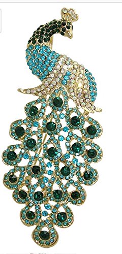 Peacock Rhinestone Brooch Animal Brooch Stone color: Clear, Blue, Light Blue, green Size: 5" by 2" Brand : AJZF EAN : 0738523416151 Package Dimensions(LxWxH) : 13x8x4cm ; 45 g