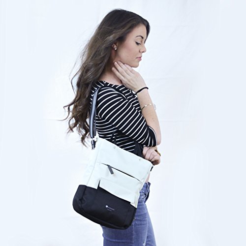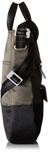 -. Feature : Crossbody/Tote with Adjustable, Nylon crossbody strap/Tote handle / Dimensions: 9.5" x 12" x 3.5" / 100% Recycled Nylon / Padded Ipad pocket: 7.5" x 8.5" with Interior Slip and cell phone pocket / Exterior Zip Pockets, 2 Exterior Slip Pockets, Interior zipper pocket and Deep main Zipper closure / Interior Slip Pockets and cell phone pocket, Key fob / Aluminum hardware and contrast stitching / Nylon Herringbone lining