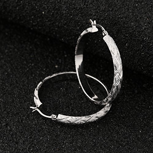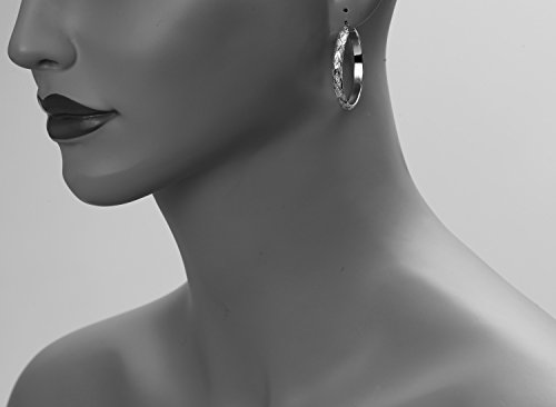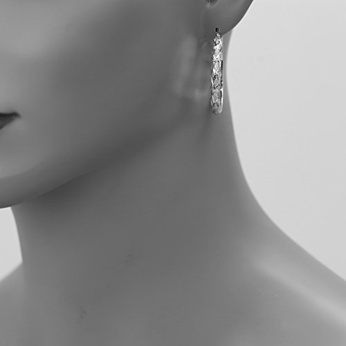 Sterling Silver Half-round Tube Laser-cut Finish X-pattern Diamond-cut Round Hoop Earrings, 1.4"