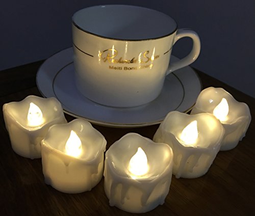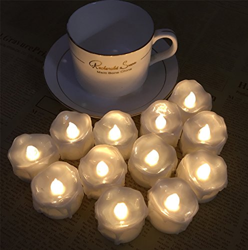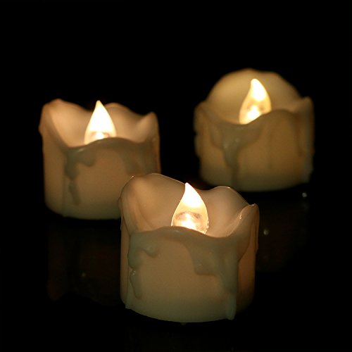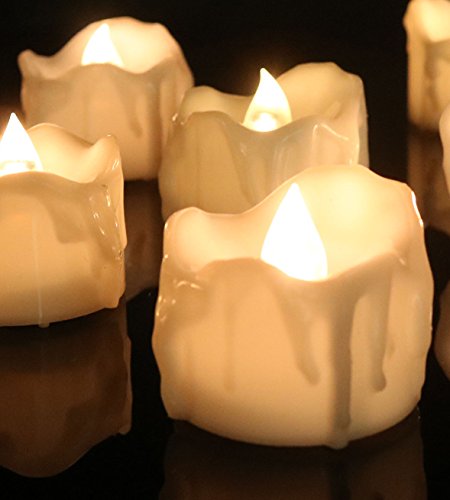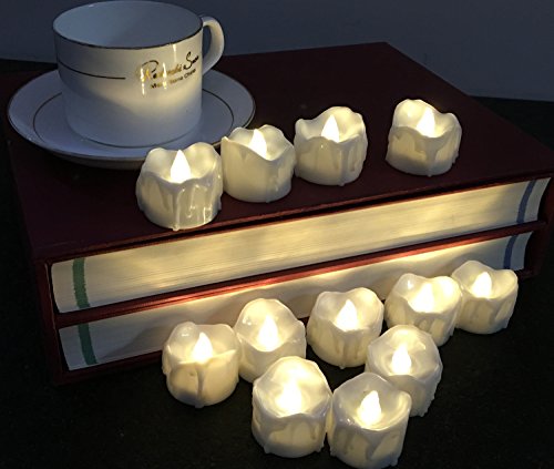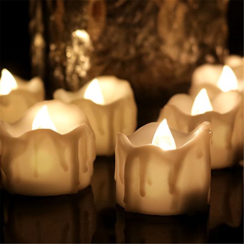 12pcs Battery Operated Candle Warm White LED Tea Lights Flameless With Timer, Wax Dripped Perfect for Wedding, Birthday, Home Party 24-Batteries Included (12, 12pcs Warm White Timer)