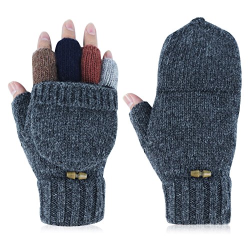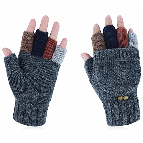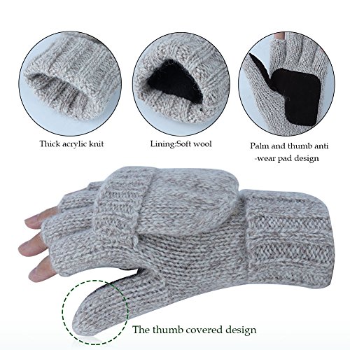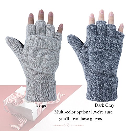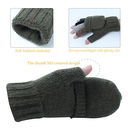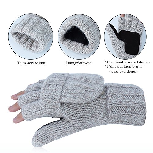 -Material: Knit Wool flocking lining - Double Warmth,keep your hands warm -Fingerless Gloves with Mitten Cover Cap and a flap mitten cover,This winter knitted Wool Gloves can help maintain the balance between indoor / outdoor work and warmth -Very suitable for:texting,typing,writing, riding their own cars, skiing, camping and vacation, etc. -Winter Knit Wool Glovesas as Birthday gift, Thanksgiving Day gift, Christmas gift, New Year gift and so on. -If you have any questions, Please check the details page or contact us.