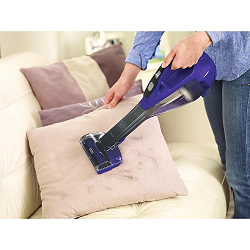 The BLACK+DECKER HLVA325JP07 lithium pet hand vac features lithium technology for strong suction and long battery life. The motorized pet head has rubber tines which help you to power through pet hair. It has a clear bag less dirt bowl that makes it easy to see dirt and easy to empty, and allows you to easily empty the dustbin without touching the dirt. It also features a washable bowl and filter for thorough cleaning. This hand vac has a pull-out extendable crevice tool for hard to reach areas, along with a Push-In brush for dusting and cleaning upholstery. A wall mount allows for versatile storage solution, and the charging indicator light notify you when vacuum is charging and/or fully charged. Backed by BLACK+DECKER 2 year limited warranty. Includes: 1) motorized pet head with rubber tines, 1) jack plug charger, 1) wall mount, 1) extendable crevice tool, 1) Push-In brush, 1) washable pleated filter.Feature