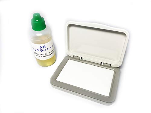 一般照明の下では見えませんが、ブラックライトをあてると  捺印された印影が浮かび上がります。 市販のゴム印やキャラクター印等が使用できます。 イベントやパーティーの再入場におススメ! 塗布用スタンプ台とブラックライトインクのセットです。 市販のゴム印やキャラクター印等が使用できます。