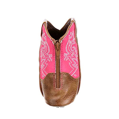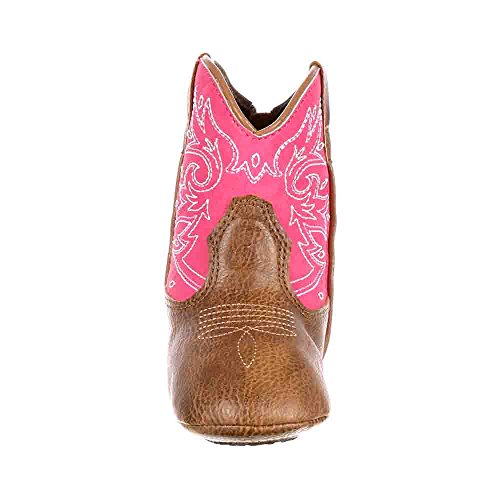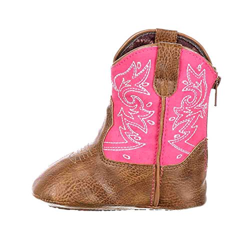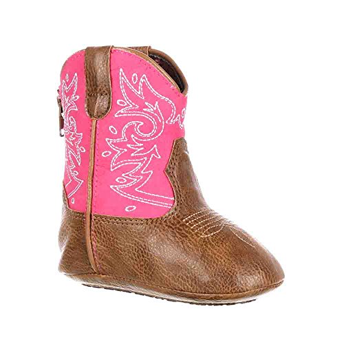 This Durango Baby Western Boot will be your baby's first cowgirl boot! It's a cute pink and brown western boot with the style of grown-up girls, but has practical features for infants. The baby boot has a pink shaft with western embroidery. This is paired with a brown foot and matching brown pull straps. Durango specially designed this with babies in mind, this cowgirl infant boot has a soft sole with rubber pads. The slip resistance of the rubber pads will come in handy once your baby starts to walk. Material: Leather.Feature