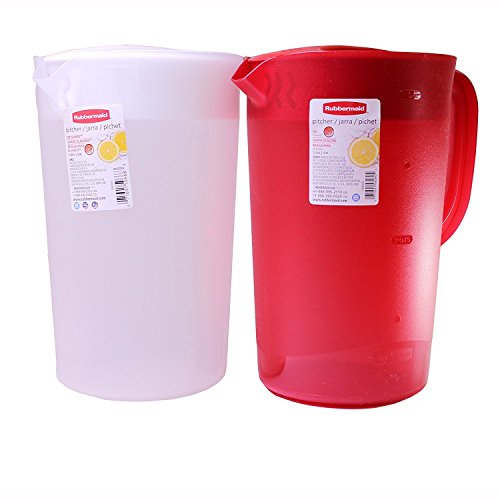 Studio : Rubbermaid Publisher : Rubbermaid Product Description The Rubbermaid classic pitcher is perfect for storing and serving your favorite drink, the Classic Pitcher has a three-position lid that turns for pouring freely, pouring with ice guard or closed. Its large, comfortable handle makes for easy lifting and pouring. Pack of 2 Colors Red and White 0