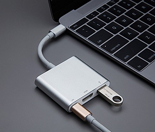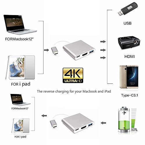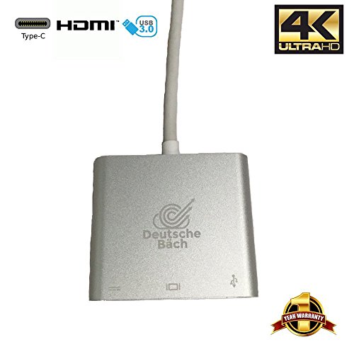 Deutsche Bäch USB C HDMI (4K HDTV) Hub Adaptor, with USB 3.0 Port and Type C Recharging Port for MacBook 2016, Chromebook Pixel, Dell XPS13, Yoga 900 and More Type C Devices