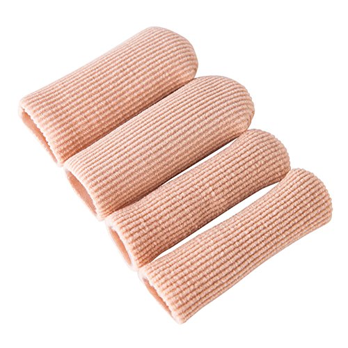 Makhry 4pcs Adjustable Cuttable Gel Toe and Finger Cap Lined Gel Toe Covers Sleeves Ribbed Knit Toe Caps Silopad Digital Caps (L)