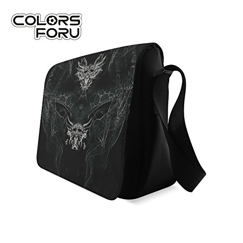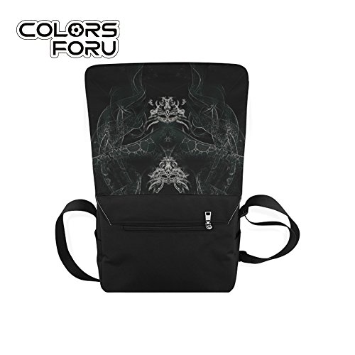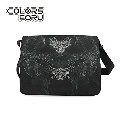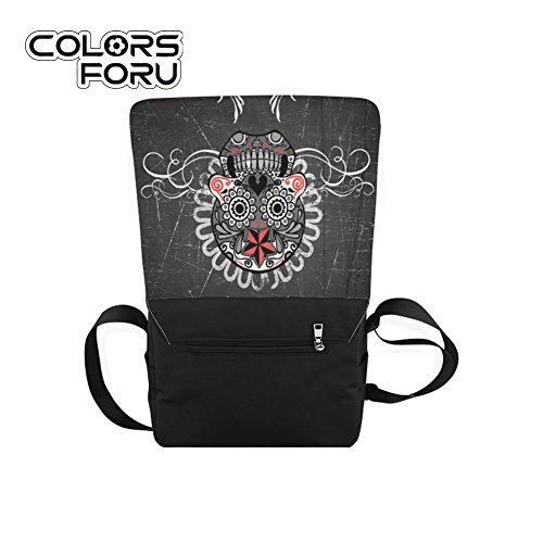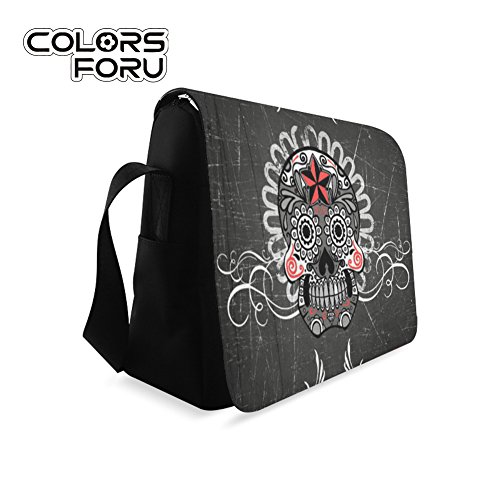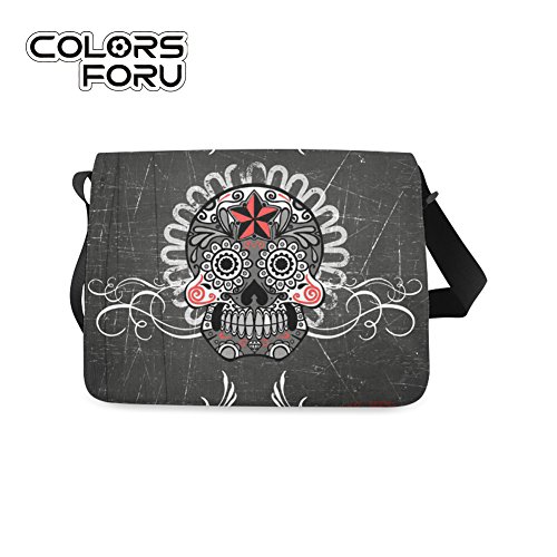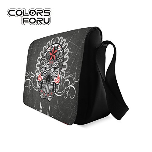 -. Brand : COLORSFORU -. Color : Black -. Feature : 21.41 Oz. Designed for fashion men and women, stylish and personalized. / Made from durable oxford fabric, casual style. / Single zippered top inside closure, Velcro outside closure. / Adjustable shoulder strap for easy and comfortable carrying. / Total 2 zipper pocket and 2 internal pockets,A back zipper pocket and an extra front open pocket. -. ProductGroup : Apparel -. ProductTypeName : LAGE -. Title : Mexican Skull Pattern Zipper Shoulder Messenger Bag School Bags For Men