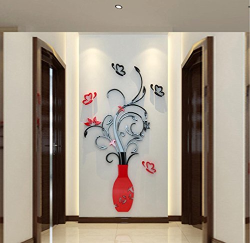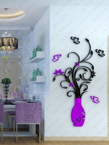 -. Title : Wall Sticker,Iuhan,DIY Crystal Arcylic 3D Vase Flower Tree Home Decal