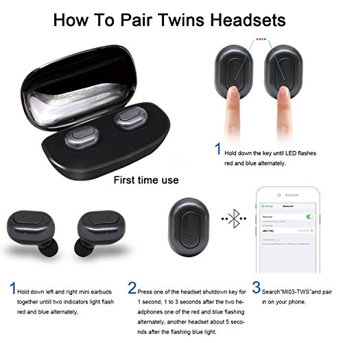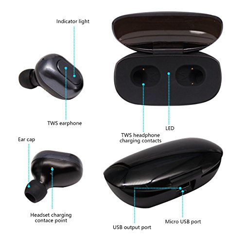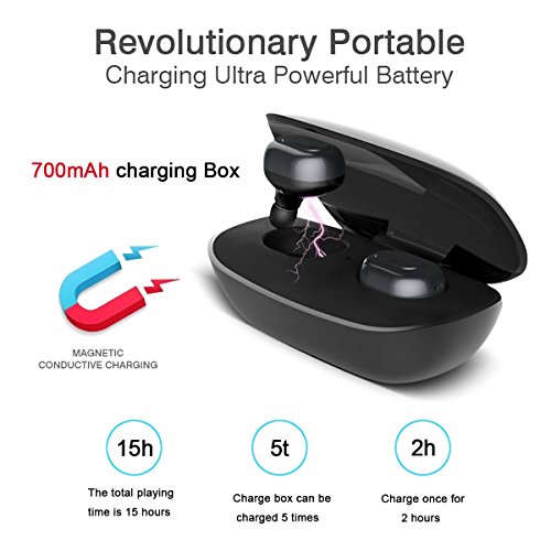 Kissral Bluetooth Kopfhorer, Bluetooth V4.1 Mini Kabellose Earbuds Zwillinge Stereo In-Ear Kopfhorer mit 700mAh Ladebox fur iPhone & Android - Schwarz