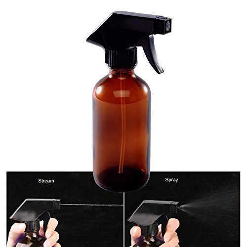 8oz and 10ml (1+6) Spray and Roller Bottle Set, Empty Refillable Amber Glass Bottles, Stainless Steel Roll On Balls, Mist & Streaming Sprayer, for EO, Kitchen, DIY Cleaning or Mosquito Repellent