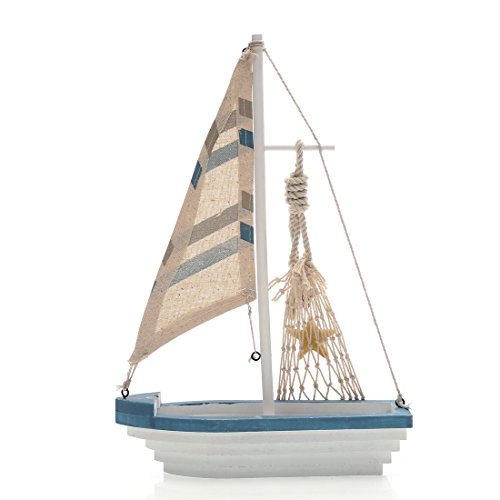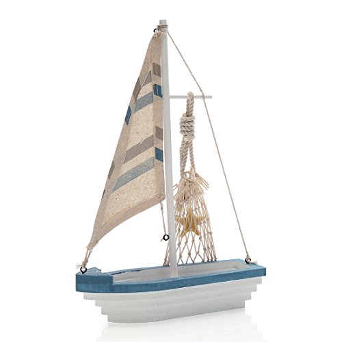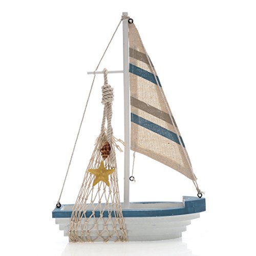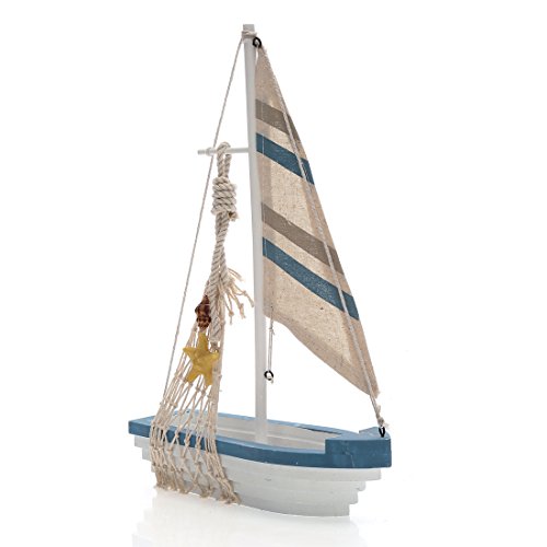 Fully Assembled 12.4"x8.4" Wooden Nautical Canvas Fish Net Sailboat (Starfish)