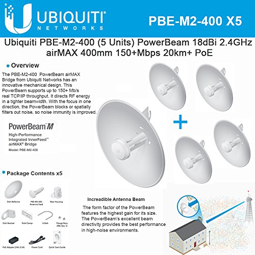 - 5-UNITS Ubiquiti Powerbeam M2 400mm PBE-M2-400 2.4GHz 18dBi 150+ Mbps airMAX CPE for customer locations5