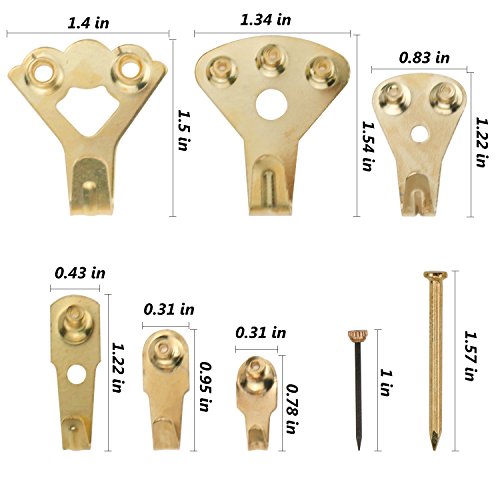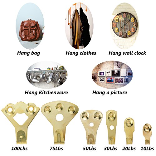 - ❤ Good Quality & Reusable - Brass plated steel wall hangers. Rust proof, heavy duty and more resistant. Easy to remove, no worry to damage your walls, just will leave a small pin hole.