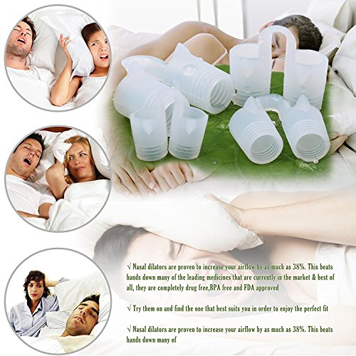 -. Feature : ✔【Anti Snoring Solution】: Delicacy health nose vents has been scientifically designed to maximize airflow through the nasal passage and can cease snoring immediately.so let you stop snoring naturally and instantly. / ✔【Safe & No Side Effect】: Delicacy anti snoring vents made with comfortable and safe material, soft medical grade silicone, odor free and BPA free, no any side effect. / ✔【Comfortable Wear & Fit Perfectly】: Each pack includes 4 different sized reusable vents to suit any size nostril & nasal passage. The silicon material is soft, comfortable & flexible to ensure your sleep feels natural. More info in product description. / ✔【Easy to Use】: These top notch nose vents are incomparably comfortable and promise maximum comfort while sleeping,all you have to do is gently insert the vent into your nostrils with a smooth move, no need for long list of directions. / ✔【Hygiene Case Included】: Packaged in a reusable plastic case to keep the nose vents clean and free of dust,also perfect to use as a travel case.