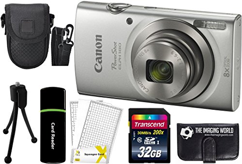 Canon PowerShot ELPH 180 20MP 8x Zoom Digital Camera (Silver) + 32GB Card + Reader + Case + Accessory Bundle