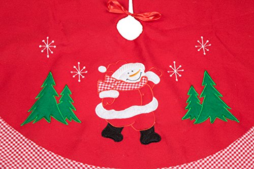 Red and White Christmas Tree and Snowman Tree Skirt by Clever Creations | Red and White Trim | Traditional Classic Festive Holiday Decor | Catches Falling Needles and Sap | 36" Diameter