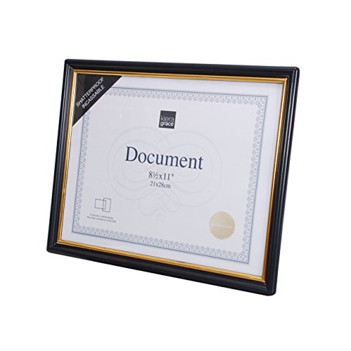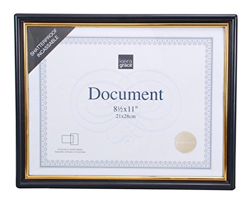 Kiera Grace Accent Document Frame with Plexi Sheet, 8.5 by 11 Inch, Black with Gold Trim