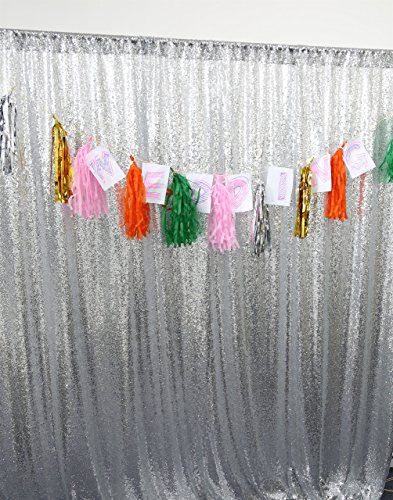 TRLYC 4 Ft X 6.5 Ft Silver Sequins Backdrop Curtain