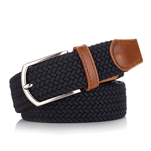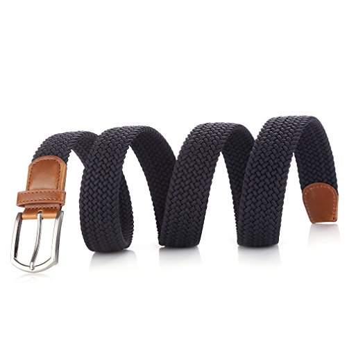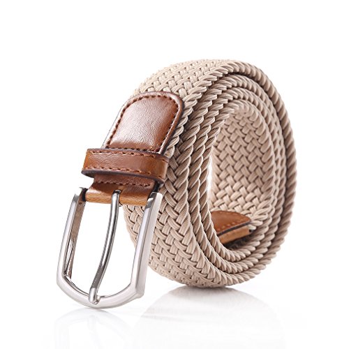 -. Feature : Material: Nylon elastic belt, alloy buckle size 1.65" wide and 2.1" long / The belt is comfortable elastic, There will not be more stretch behind. It is not easy to deform. / Belt wide 1.38", fitting pants and jeans for most size. S(29-33"),M(34-37"),L(38-41"),XL(42-45"), XXL(46-48) / The belt is smooth feeling and bright looking suitable for both man and woman. It is adjustable size and no holes, simple and sturdy. The belt will be never falling apart or crease. / Black ,Coffee, Khaki.