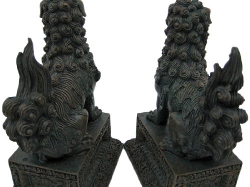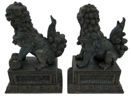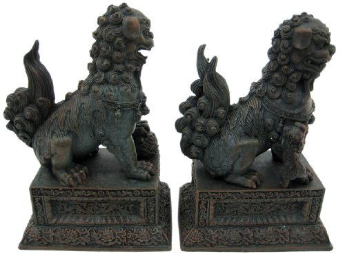 Chinese Guardian Lions Foo Dogs Bronzed Finish Statue Bookends