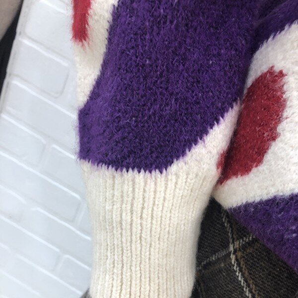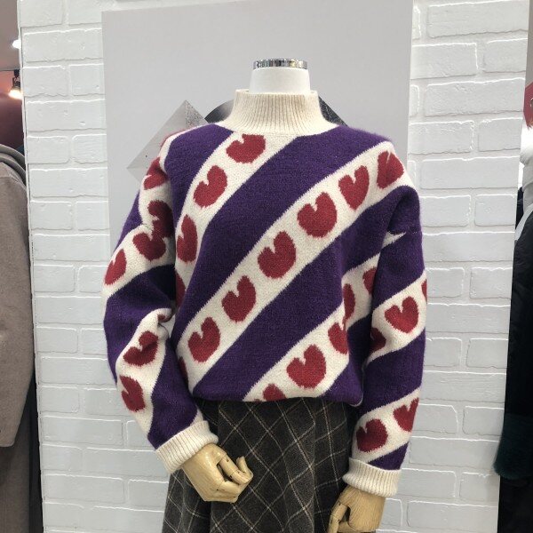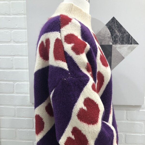 사선으로 하트모양이 포인트인 반목폴라로 두게감이 있는 니트입니다.