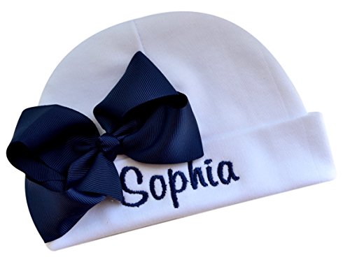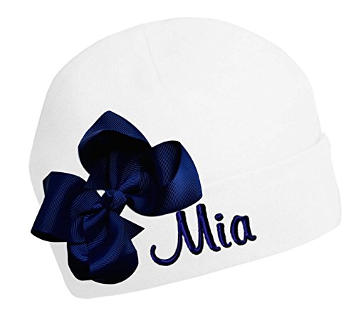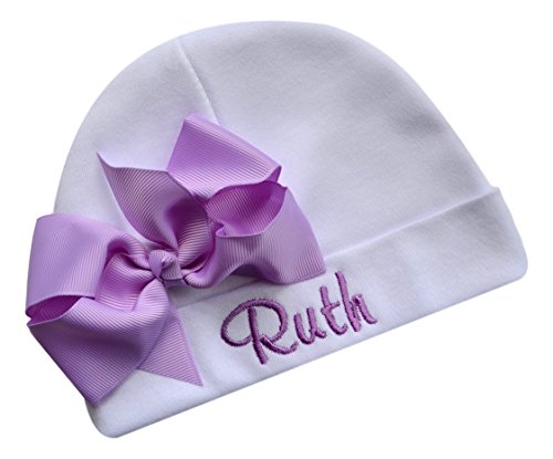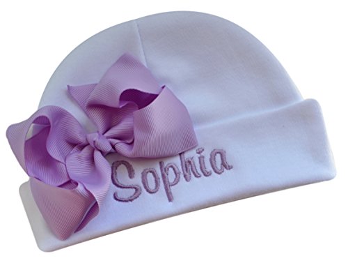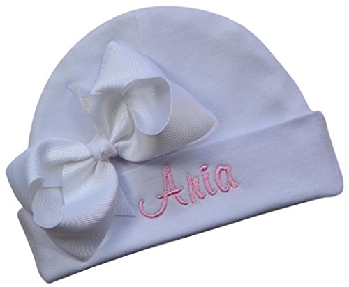 | Personalized Embroidered Baby Girl Hat With PINK GROSGRAIN BOW with CUSTOM NAME |