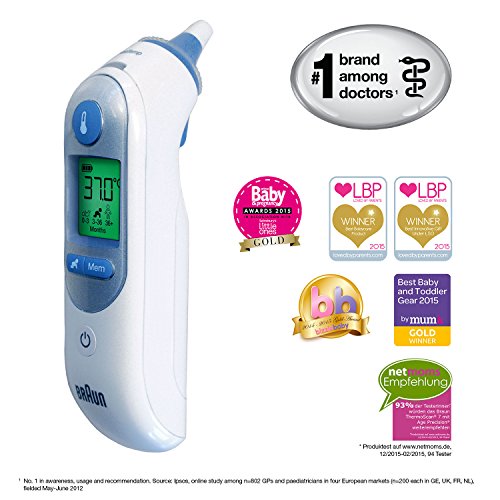 -. Feature : Thermoscan / Braun ThermoScan - das von Ärzten am häufigsten verwendete und empfohlene Fieberthermometer. Garantierte professionelle Präzision. / Patentiertes, farbcodiertes Age Precision® Display (altersabhängige Termperaturanzeige) mit Nachtlicht. / Patentierte, vorgewärmte Messspitze zur Sicherstellung höchster Genauigkeit / ExacTemp Technologie bestätigt in Sekunden die sichere Positionierung und damit ein genaues Messergebnis / Inkl. 2 AA Duracell Batterien, Aufbewahrungsbox und 21 hygienischen Einmal-Schutzkappen