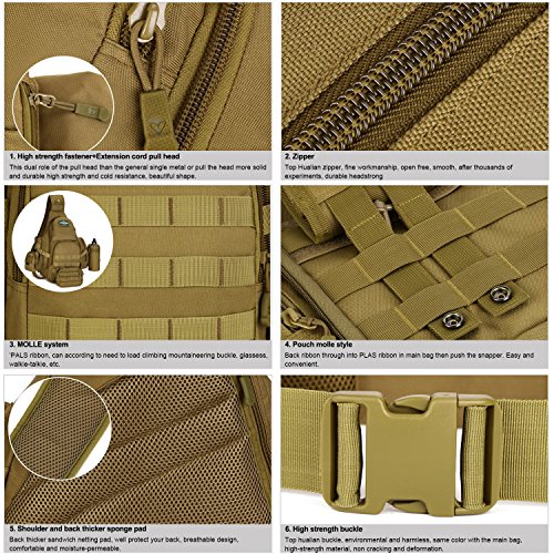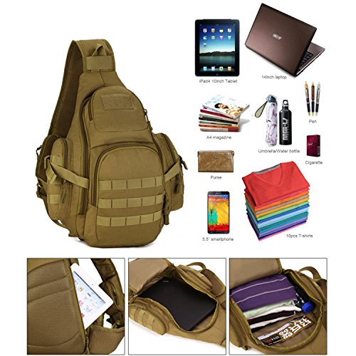 -. Title : Huntvp Tactical Military Daypack Sling Chest Pack Bag Molle Laptop Backpack Large Shoulder Bag Crossbody Duty Gear For Hunting Camping Trekking