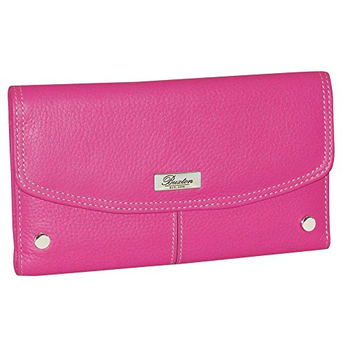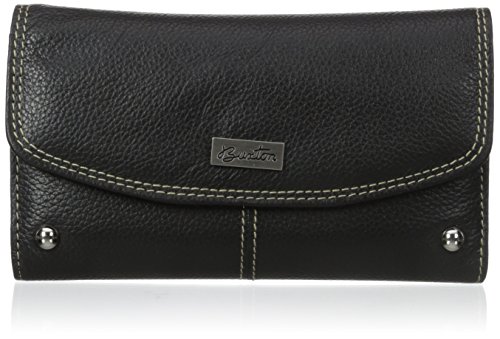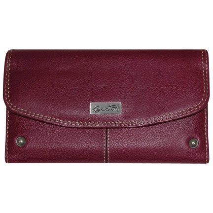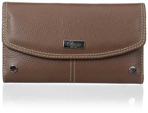 Elegance meets functionality in this Mushroom Westcott Checkbook Wallet from Buxton. This stylish clutch is crafted of textured genuine leather and features a spacious interior that will help keep your busy lifestyle neat and organized. Store the necessities in 4 card slots, a zippered coin pocket, 1 ID window, 4 photo sleeves and a removable checkbook cover. The exterior includes an additional zippered pocket and silver accents to polish off this stylish accessory. Beautifully presented in a Buxton gift box. Measures 6.75" x 4" x 1.Feature