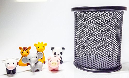 Pencil Holder Pen Holder Black And Popular Iwako Japanese Erasers, Cute Erasers, Kawaii, Zoo Animals, (6 Pieces)