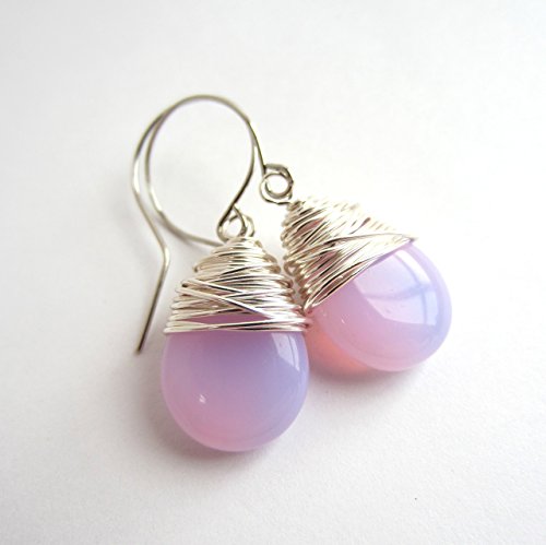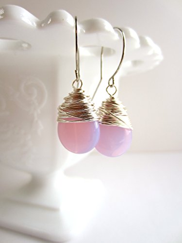 -. Title : Milky Pink Earrings Czech Glass Wire Wrapped Earrings Silver Tone Wire