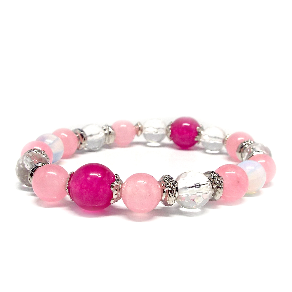 内周:約16cmサイズ:ジェイド各色 10mm・8mm水晶ミラーボールカット 8mmシンセティックオパール 8mm