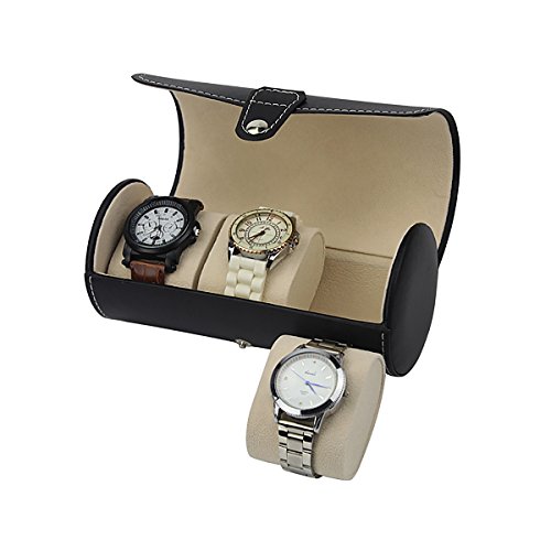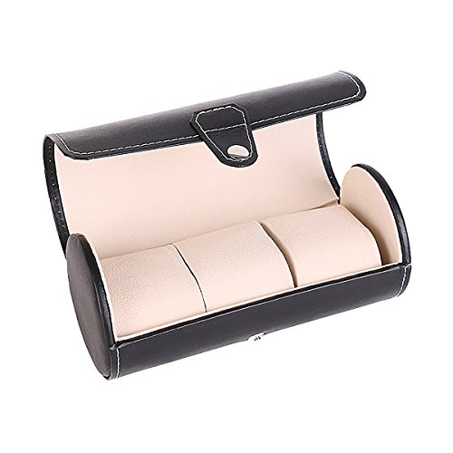 Watch Roll Organizer PU Leather Watch Roll Travel Case for Watches Jewelry with 3 Velvet Cushions