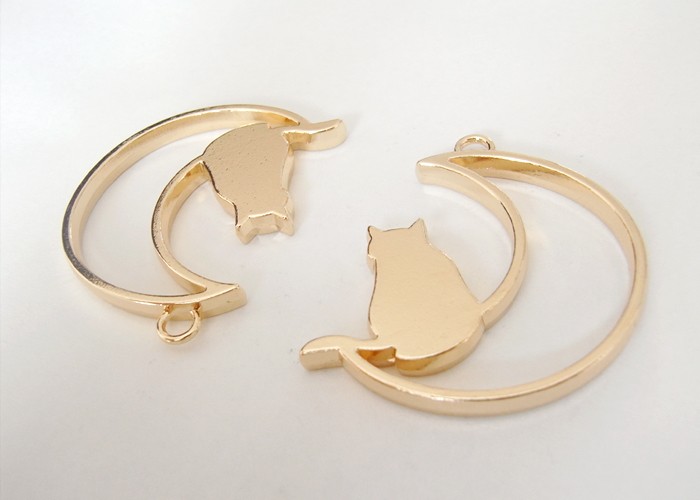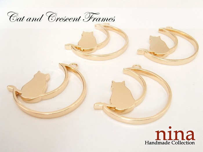 ■商品名 猫と三日月のレジン枠 金?4個 ■注意事項 製品の性質上、輸入品と言う事もあり小キズや色ムラ、形に多少のバラツキがある場合がございます。 ブラウザやディスプレイ等の閲覧環境によっては、現物と色の見え方が異なる場合がございます。 ■生産国 中国/ 【 猫と三日月のレジン枠 金 4個 】 レジン枠にも、そのままアクセにも使える猫と三日月のチャーム レジン 封入 / チャーム クラフト ハンドメイ
