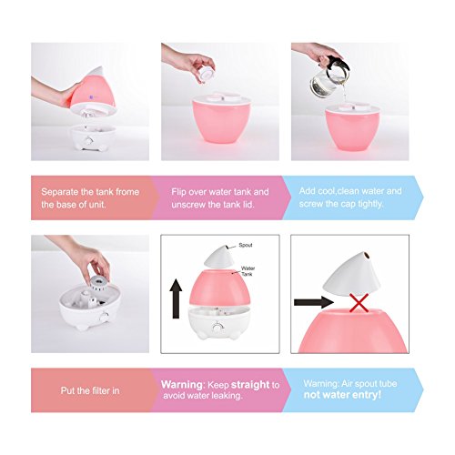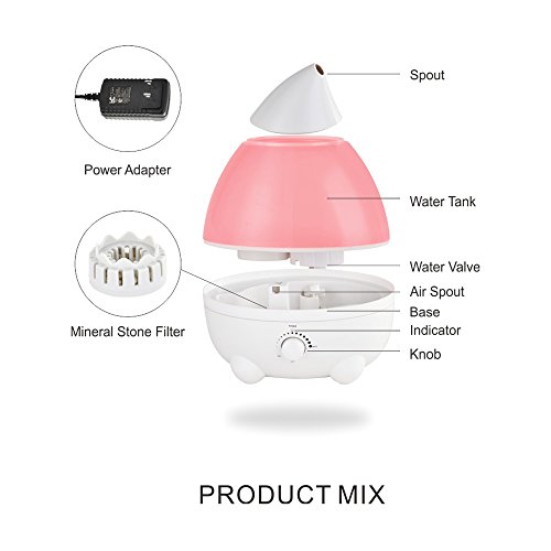 - 【COOL AND HEALTHY】Our humidifier supply cool mist when it is working . Cool mist humidifiers do not contain a heating element and are one of the safest for newborns and young children. You can use every day to create moisture air without any harmful substance.