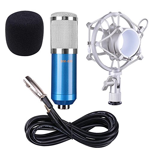 -. Brand : AW -. Color : Blue -. Feature : Frequency response provides vocal intelligibility and crispness / Shock Mount to reduces handling noise / Features an angle adjustment with locking knob / Foam insert to hold and protect microphone / Neodymium magnet for high signal noise ratio -. IsAdultProduct : 0 -. Label : AW -. Manufacturer : AW -. MPN : AW-CMI000001 -. NumberOfItems : 1 -. PackageQuantity : 1 -. PartNumber : AW-CMI000001 -. ProductGroup : Musical Instruments -. ProductTypeName : SOUND_AND_RECORDING_EQUIPMENT -. Publisher : AW -. Studio : AW -. Title : AW BM800 Pro Condenser Microphone Kit Shock Mount Home Studio Audio Cable Sound Record Blue