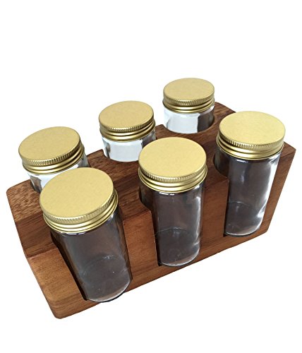 -. Title : Rustic Wall Co. Natural Acacia Wood Stand with Recycled Glass Spice Jars