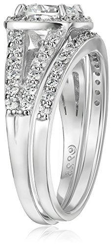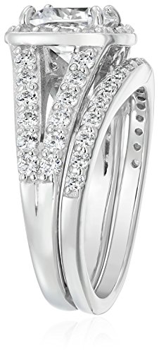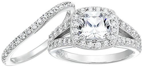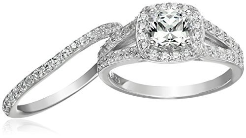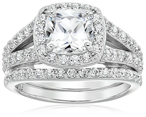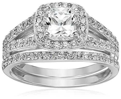 -. Title : Sterling Silver Platinum-Plated Swarovski Zirconia Cushion Halo Ring