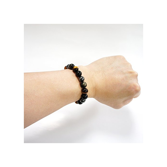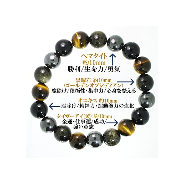 원본상품명: 新宿銀の 幅10mm ヘマタイト 曜石 タイガアイ オニキス ブレスレット 18cm~19cm (メンズM~L) 人 天然石 パワストン