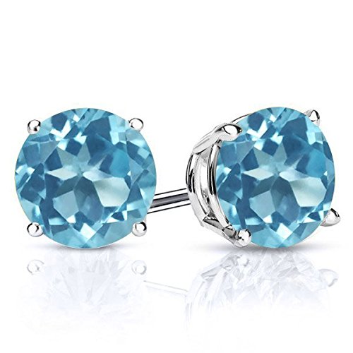 -. Title : 3.10 Ct Round 7MM Swiss Blue Topaz Gemstone Birthstone 925 Sterling Silver Stud Earrings