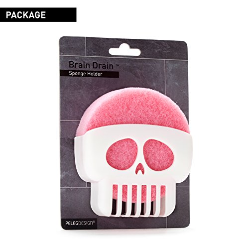 - 💀 ONE OF A KIND SPONGE RACK: The PELEG DESIGN® Brain Drain™ MODEL PE577 is a fun, clever sponge holder that will delight men, women, and young adults as it is a white skull with the cap open to hold almost any regular-sized sponge; Packed with a round sponge secured to a display card ready for giving; each product measures 3.94 by 4.53 by 1.77 inches.