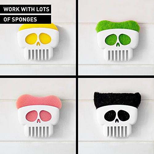 - 💀 EASY TO INSTALL AND SAFE TO USE: PELEG DESIGN® Brain Drain™, applies quickly to any clean and smooth surface using 2 designated suction caps located at the back; applied onto tiles, walls, sinks, cabinets in kitchens and baths, giving you direct access to a sponge; due to the draining capability of the skull, sponges do not sit and collect bacteria, dirt, and germs.