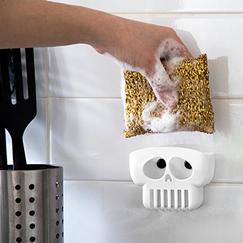 BRAIN DRAIN by PELEG DESIGN - White Skull Sponge Holder for Kitchen, Bath, or Sink that Drains and Dries All Types of Sponges – 1 Sponge Included